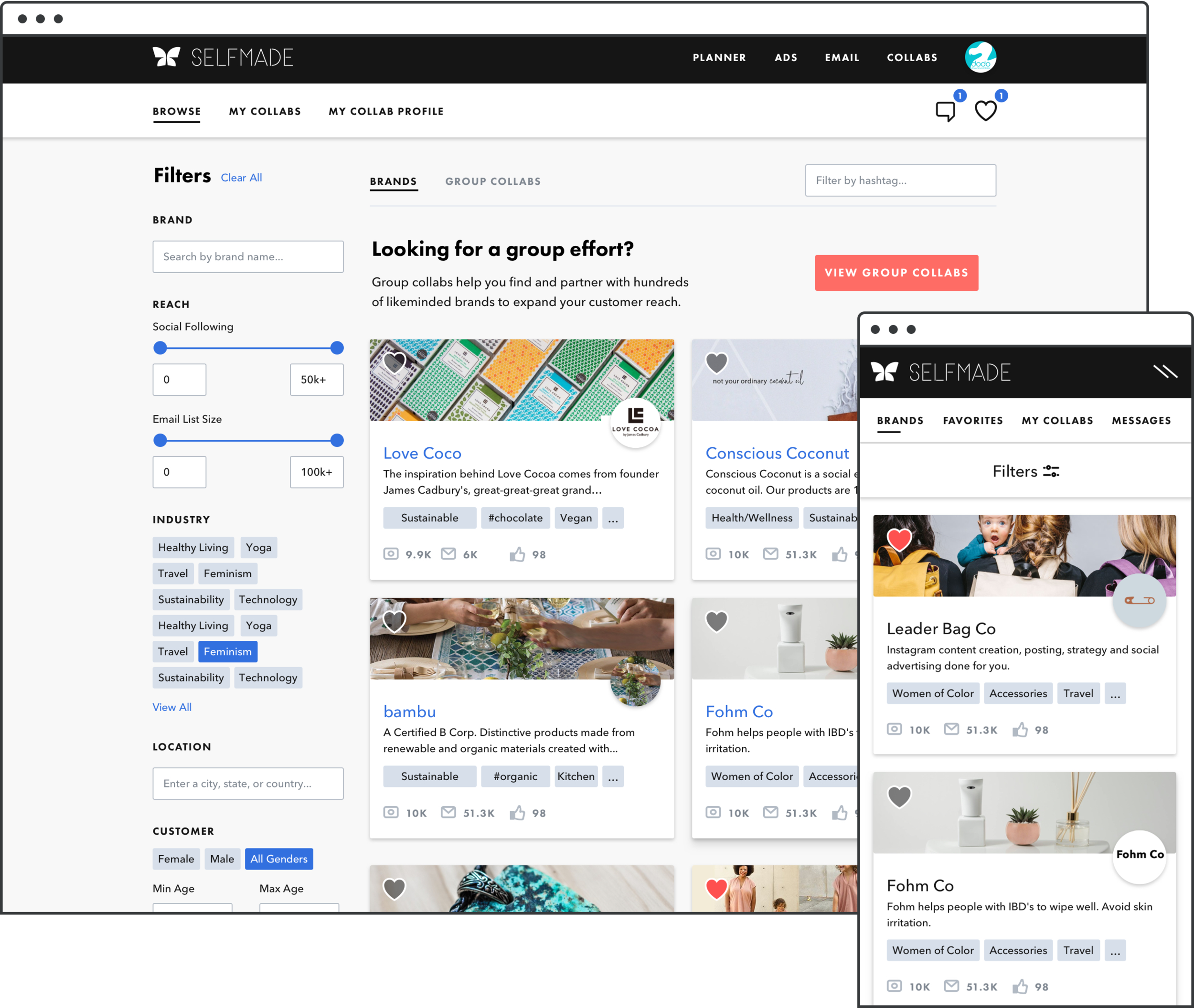 When the need to grow our client base arose (alongside our marketing goal of increasing brand awareness), the product team came up with the concept of Collabs - a totally free platform for small businesses to discover each other, learn how they could collaborate, and do so using our collaboration tools.
